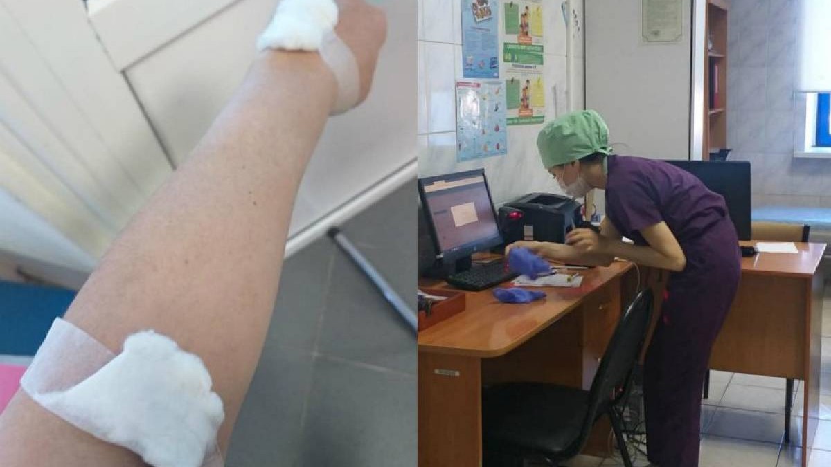 Қала тұрғынының айтуынша, емханада қолынан қан алмақ болған жас медбике оның тамырын таба алмаған. Бұнан кейін әйел инені алып тастауын сұрапты. Артынша медбике оны басқа кабинетке жіберіп, сол жерде "кәсіби мамандар" отыратынын айтқан.