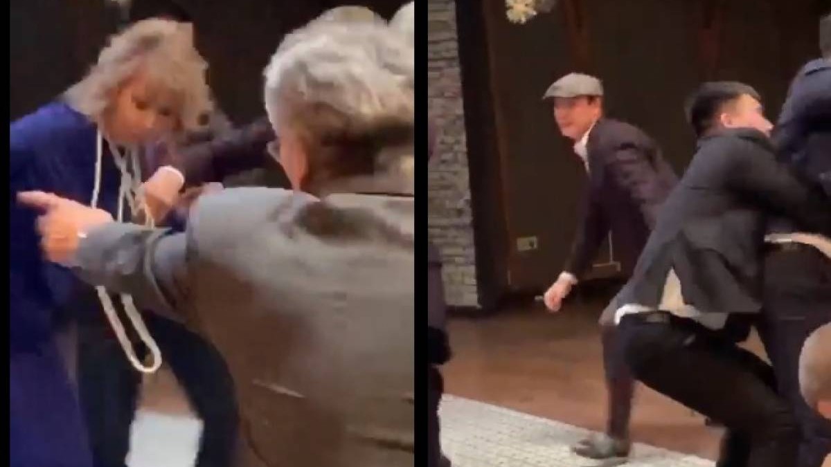 Видеода тойдың ортасы төбелес алаңына айналғанын көруге болады.
