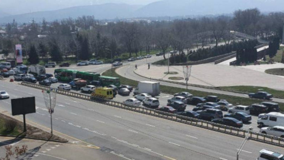 Kris_p_almaty парақшасында үлкен кептеліс бар видео пайда болды. Кадрда көрсетілгендей, полиция қызметкерлерінің екі көлігі жолды жауып тастады.