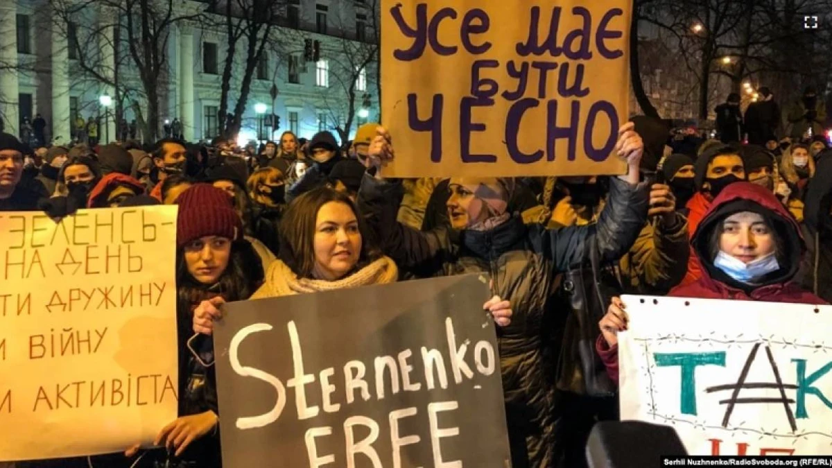 Стерненко 2015 жылы жергілікті кеңес депутаты Сергей Щербичті ұрлап әкетіп, оны босату үшін 300 мың гривен (10 мың доллар) талап еткен деп хабарланды. Бірақ күдікті тағылған айыпты жоққа шығарып, істің саяси астары барын мәлімдеген. Сот үкімі шыққан соң оның телеграм-арнасында 23 ақпанда Киевте Украина президенті кеңсесі алдында наразылық акциясына шығуға үндеген жазба жарияланды.