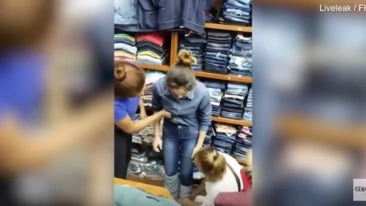 Киім сататын дүкен қызметкерлері өз джинс шалбарының ішіне ұрланған шалбар салып шықпақ болған аруды ұрып тастады деп хабарлайды ru.oxu.az сайты.