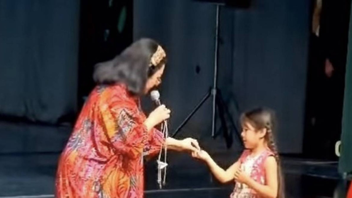 Әншіге кішкентай қыз зергерлік бұйым сыйлаған. Ал Мақпал Жүнісова оған жауап ретінде саусағындағы бриллиант сақинасын шешіп берген.