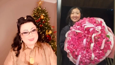 Халық әртісі қызы Мерейдің әкелген гүлін көрсетіп, ризашылығын білдірді.