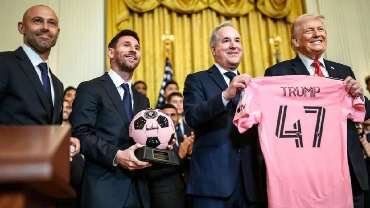 Inter Miami CF клубының шабуылшысы Лионель Месси Ақ үйдегі салтанатты қабылдау кезінде Дональд Трампқа команда ойыншылары қол қойған футбол добын сыйға тартты, деп хабарлайды kznews.kz.