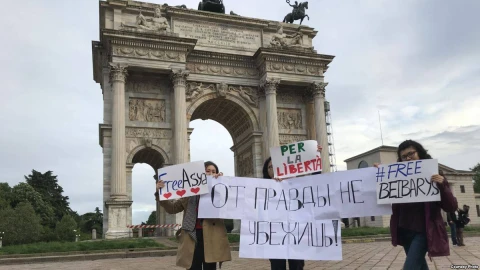 Сәуірдің 26-сы күні Италиядағы қазақстандық студенттер Алматы марафонында баннер ілгені үшін қамалған жастарды қолдап, акция өткізді.