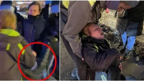 Санкт-Петербург қаласында санкцияланбаған акция кезінде әйелді ішінен тепкен полиция қызметкері одан кешірім сұрады.