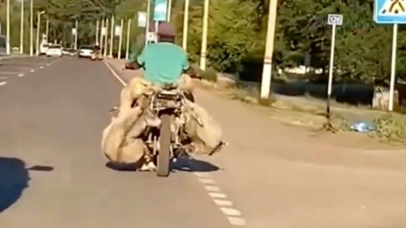 Желіде таралған бейнежазбада ер азамат мотоциклдің екі жағына екі қой, алдына тағы біреуін байлап алып, көшеде қозғалып бара жатқанын байқауға болады. Видео желі қолданушыларын таңғалдырды.