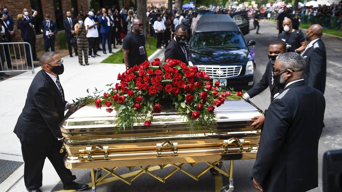 Қаза тапқан афроамерикандық Джордж Флойдтың қоштасу рәсімі өзі туған Хьюстонда өтті. Зиратқа баратын соңғы шақырымда табыт ат ерттелген ақ катафалкадағы қойылды.