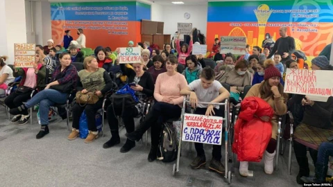 Мүгедек баласы бар әйелдер былтырдан бері бірнеше мәрте Ақорда алдына жиналып наразылық білдірген еді. Олар өздеріне ерекше мәртебе беріп, көп балалы әйелдермен мәртебелерін теңестіруді талап еткен.
