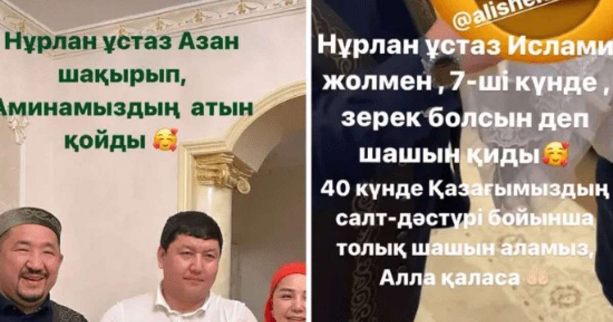 "Нұрлан ұстаз азан шақырып, Аминамыздың атын қойды. Нұрлан имам жетінші күн дегенде "Зерек болсын" деп қызымыздың шашын қиды. 40 күннен кейін қазақтың салт-дәстүрі бойынша шашын толық аламыз", - деп жазды Алтынай Жорабаева Instagram парақшасында.