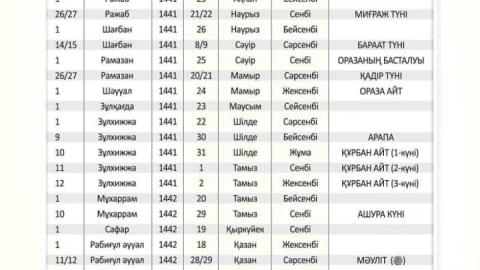 Қазақстан қалалары үшін 2020 жылға арналған ораза кестесі әлі дайын болған жоқ.