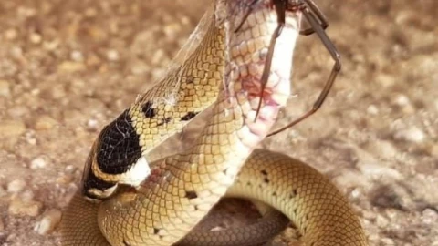 Австралияда ең қауіпті саналатын өрмекші өзінен бірнеше есе үлкен жыланды жеңген.