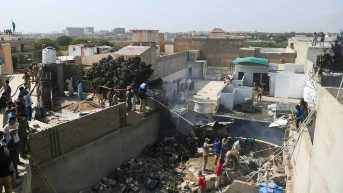 Пәкістанның мемлекеттік арналарында әуе кемесі қаланың тұрғын аудандарында құлағанын көрсететін кадрлар пайда болды.