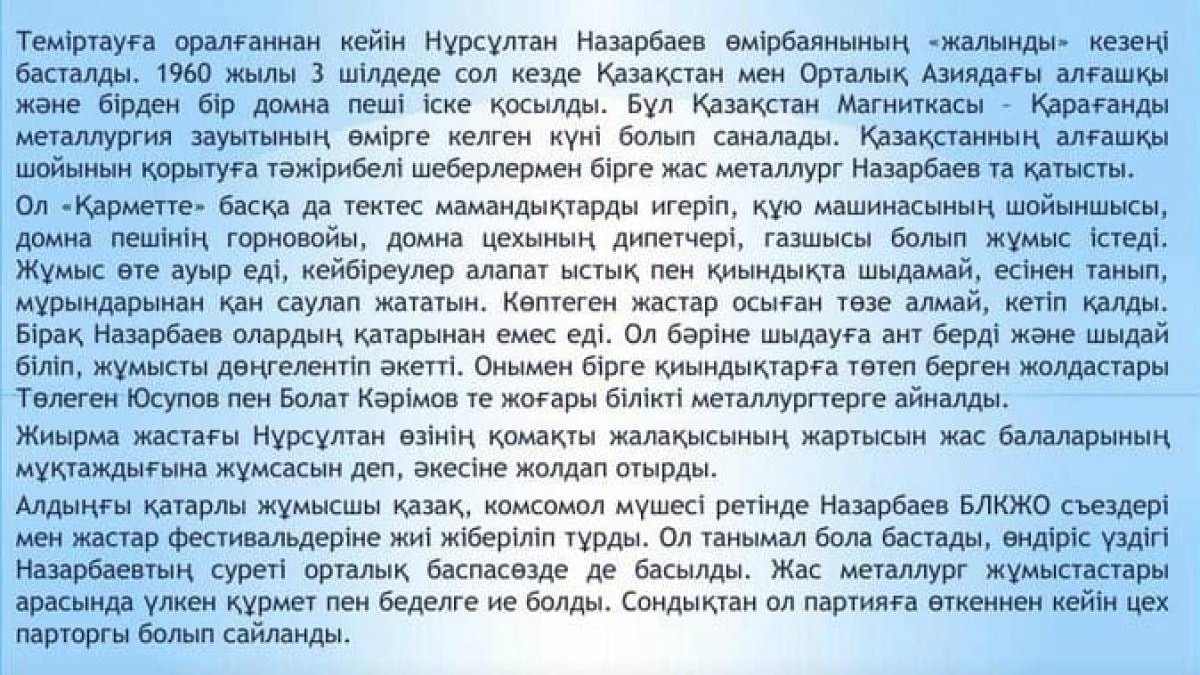 Презентация (слайд): 1 Желтоқсан - Тұңғыш президент күні (Нұрсұлтан Әбішұлы Назарбаев) (3 слайд)Тұңғыш президент күні Скачать/жүктеу