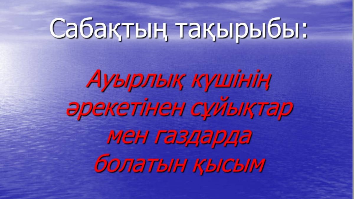 Презентация (слайд): Ауырлық күшінің әрекетінен сұйықтар мен газдарда болатын қысым (1 слайд)