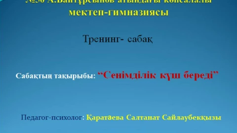 Презентация (слайд): Психология|Сенімділік күш береді (1 слайд) Презентация (слайд): Психология|Сенімділік күш береді (2 слайд) Презентация (слайд): Психология|Сенімділік күш береді (3 слайд) Полную версию материала можете скачать через !!!! Рахмет ретінде жарнамалардың біреуін басуды сұраймын!