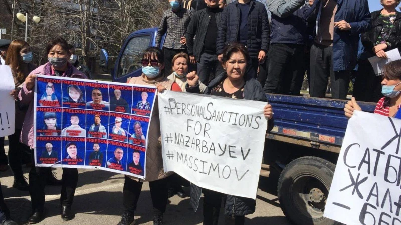Олардың кейбіреулерінің қолдарында  Қазақстан шенеуніктеріне жеке санкция салуды сұраған плакаттар бар. Кейбірі «саяси тұтқындардың»  суреті басылған плакаттар көтеріп, оларға бостандық сұрады.