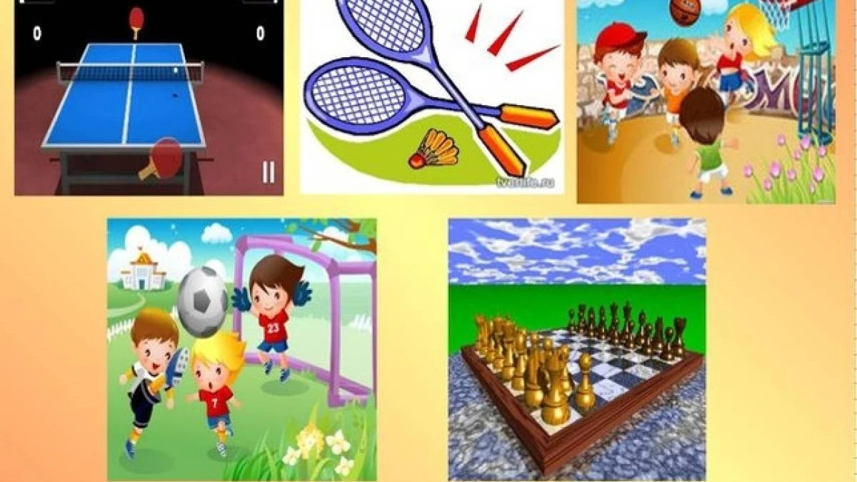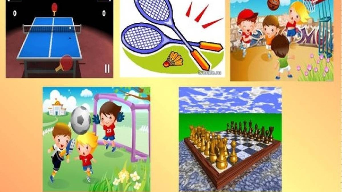 Суреттегі спорт түрлерін еске түсіру. Оқушылар ортаға жиналып, суреттегі спорт атауларын атап шығады.