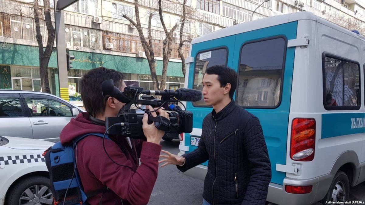 Астанада Азаттықтың түсірілім тобының камерасын көлегейлеген жас адамдардың бірі "әкімдіктің тапсырмасы" жайлы айтып қалды. Өзін "студентпін" деп таныстырған жас камераның алдына тұрып алып, ҚДТ (Елде тыйым салынған "Қазақстанның демократиялық таңдауы" қозғалысы - ред.) шарасын емес, өздерін түсіруді сұрады. Журналистер сол маңда жүрген полицияға шағымданғанымен, олар шара қолданбады.