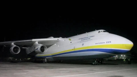 Украинаның "Мрия" атты алып ұшағы Варшамаға медициналық жүк жеткізген. 12 сәуірде Қытайға ұшып бара жатқанда Алматы әуежайында қонып, жанар-жағармай құйған. Ал 14 сәуірде қайтар жолда екінші рет аялдаған. Сол кезде борттан ұшақты жетектегіш құралын шығарып, тұраққа қойған болатын.