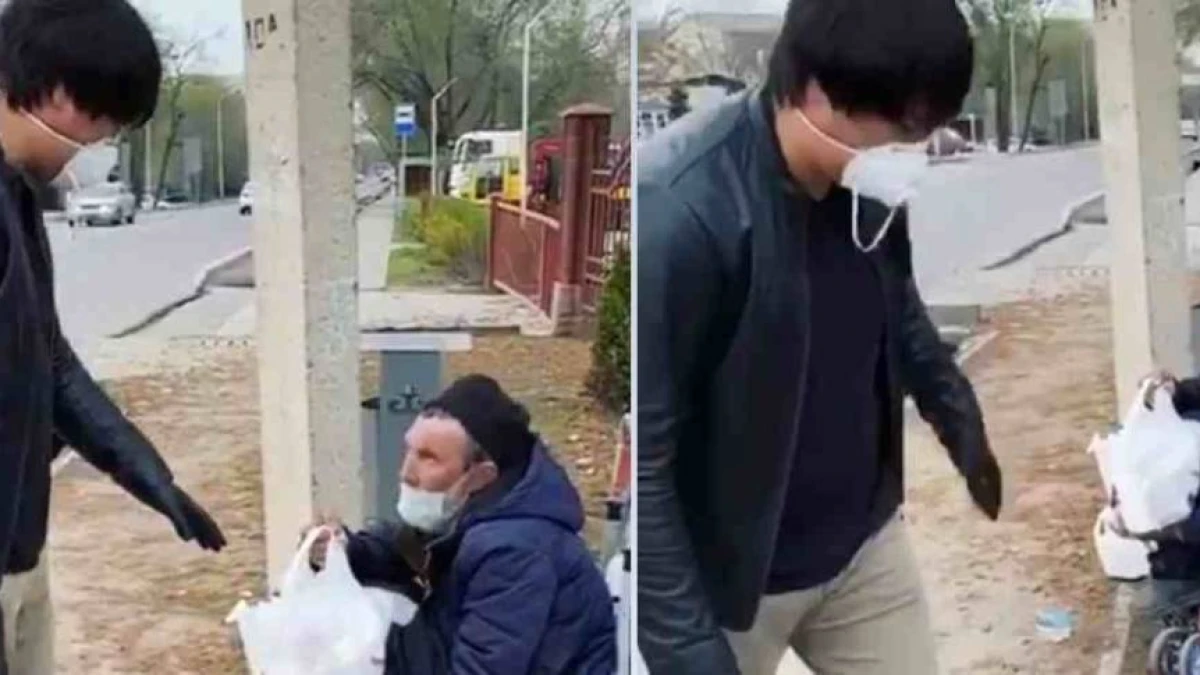 Желіде жарияланған видеодан әншінің көлікпен азық-түлік тиеп келіп, әр адамға бір қаптан таратқанын көруге болады. Қажет еткен адамдар бір-бір қаптан өздері әкетіп жатты.