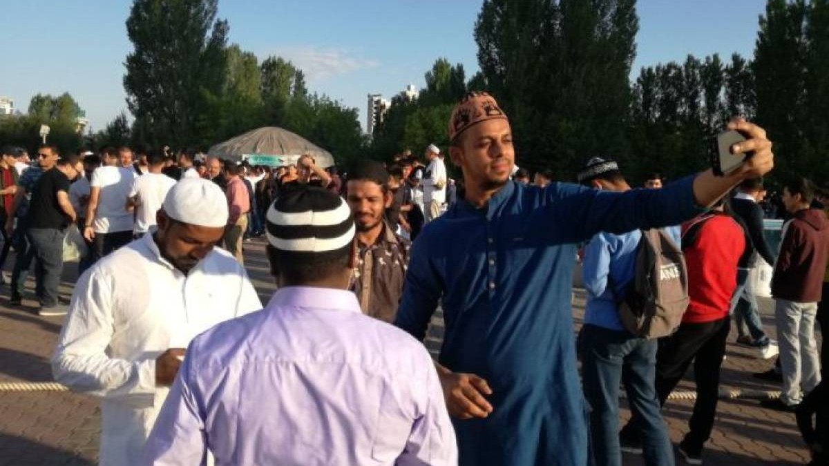 Астаналықтар таң атпай алдымен айт намазына асықты. Көшемен ағылған халықтың қарасы көп болды. Ал мешіттерде ине шаншар жер болмады. Адамдар көліктерін жолда тастап, мешітке тезірек жетуге тырысты. Намазға келгендердің ішінде шетелдіктер де көп болды. Мәселен, "Әбу-Даби Плаза" құрылысында жұмыс істеп жатқан мұсылман үндістердің көбісі Нұр-Астана мешітіне келді. Барлығы ақ киімдерін киіп, сапқа тұрды.