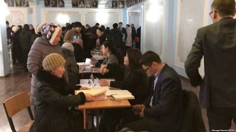 Шенеуніктерге шағыммен келген көп балалы аналар. Қарағанды, 11 ақпан 2019 жыл.