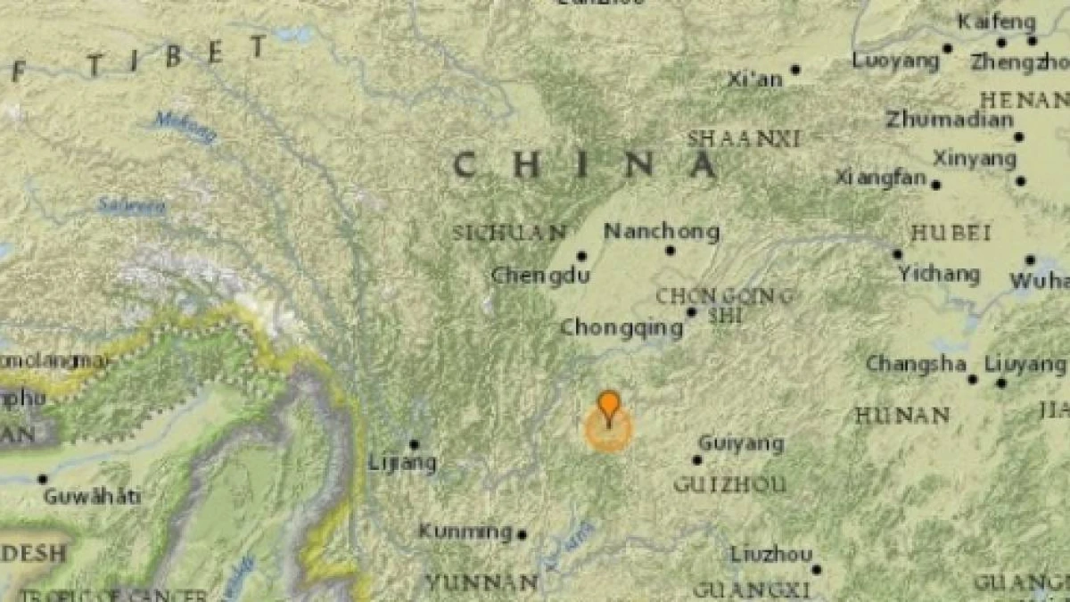 Табиғи апат ошағы Гуйчжоу провинциясынан 60 шақырым жерден өтіп, кіндігі 10 шақырым тереңдікте болды.