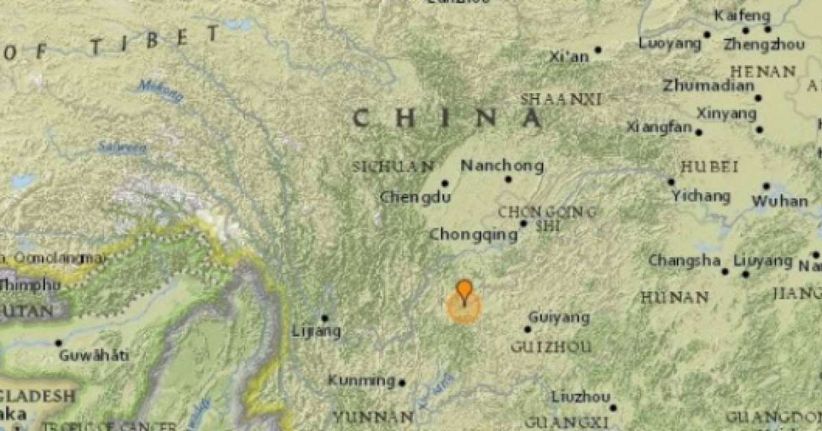 Табиғи апат ошағы Гуйчжоу провинциясынан 60 шақырым жерден өтіп, кіндігі 10 шақырым тереңдікте болды.