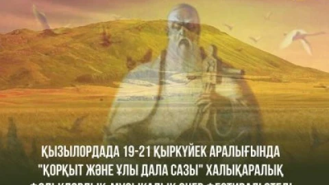 Сыр елінде 19-21 қыркүйек аралығында дәстүрлі "Қорқыт және Ұлы дала сазы" Халықаралық фольклорлық-музыкалық өнер фестивалі өтеді. Шарада Қазақстан, Әзербайжан, Өзбекстан, Қырғызстан, Англия, Ресей (Татарстан, Башқұртстан), Түркия, Қытай елдерінің, сондай-ақ ТҮРКСОЙ мен Түркі академиясының өкілдері, көрнекті ғалымдар мен өнертанушылар бас қосады.