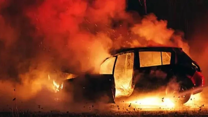 Қызылорда қаласында жол бойындағы талға соғылған жеңіл көлік толығымен жанып кетті.