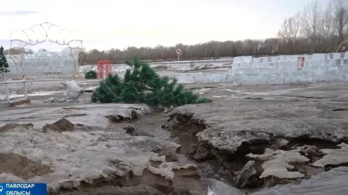 Ертіс жағасында балаларға мұз қалашығы мен сырғанақ жасауды мердігер компания бір апта бұрын бастаған. Бірақ жұмыстың жартысы бітіп, азы қалғанда барлығы ағып, айнала көл болды.