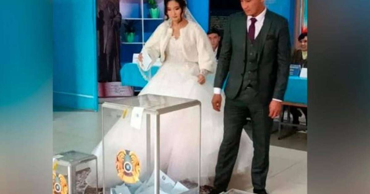 Жас отбасы Жақсылық Зайдин мен Жанару Сайлау Қанағат елдімекеніндегі №631 сайлау учаскесіне той көйлегімен келіп, өз таңдауын жасады.