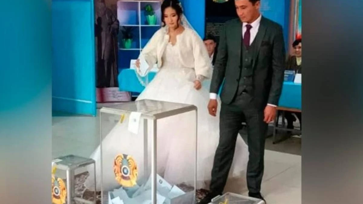 Түркістан облысында сайлау учаскесіне той көйлегімен келген жас жұбайлар дауыс берді, деп хабарлайды ҚазАқпарат тілшісі.