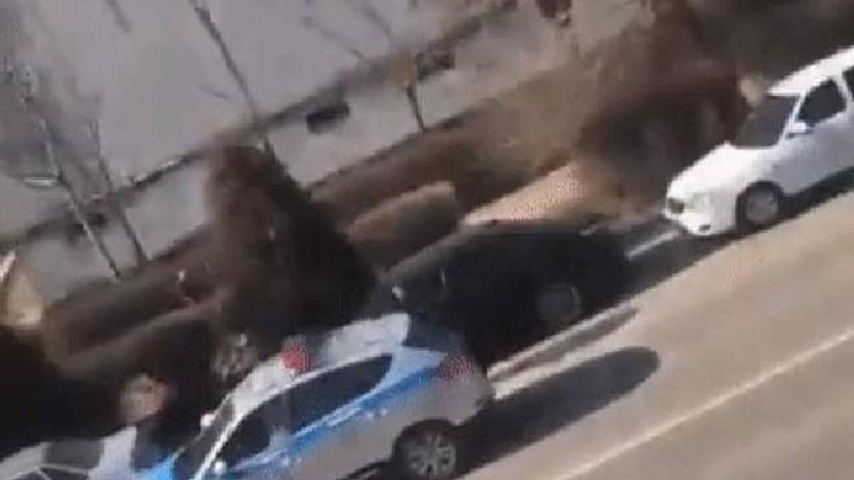 Кейін ер адам полиция көлігін көріп, оған шабуыл жасаған. Соңында тәртіп сақшылары шабуылдаушыны ұстаған.