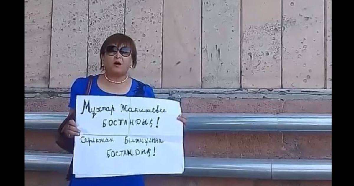 Гүлнар Момынова бүгінгі акциясын сонымен бірге елде саяси тұтқын ретінде танылған "Шаңырақ ісі" бойынша сотталған Арон Атабек, Алмас Жұмағалиев, Кенжебек Әбішев және өзге азаматтарға арнайтынын, биліктен олардың да бостандығын талап еткенін айтты.