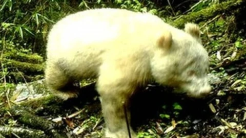 Сирек кездесетін альбинос панда таспаға түсіп қалған