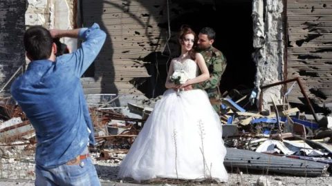 Теңіз дауылы, орман өрті, су тасқыны, әскери әрекеттер – осылардың ешқайсысы суреттегі ғашықтарды тоқтатпады, қорқытпады, үйлену тойын жасау шешімін өзгертуге немесе кейінге қалдыруға мәжбүрлемеді.