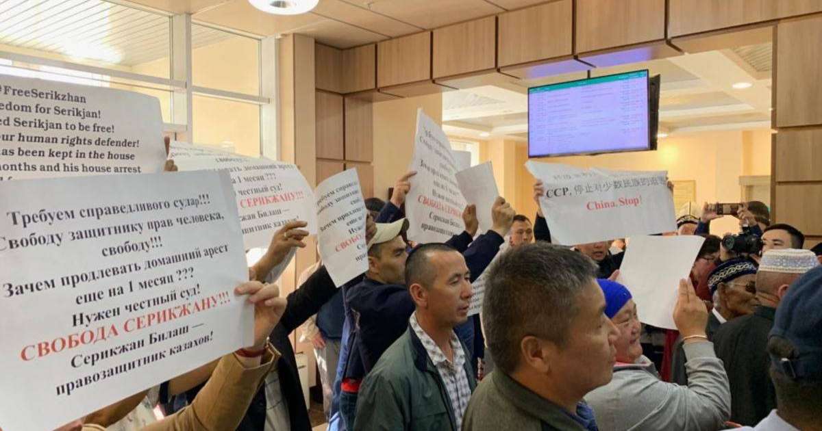 Сотқа Серікжан Бәлішті қолдау үшін қала маңындағы Қоянды, Өндіріс елді аймақтарында тұратын және Шығыс Қазақстан облысынан көптеген адам келді. Бірақ оларды сот отырысы жабық өтетінін айтып залға кіргізбеді. Бұған наразылық білдірген Біләштің жақтастары сот ғимаратында тұрып "Бостандық!", "Әділ сот керек!" айқайлап қолдарына "Серікжанға бостандық берілсін!", "Stop, China!" деген жазулар жазылған плакаттар көтеріп, сотқа кіргізуді талап етті. Жиналғандардың бір сағаттан астам уақыт ұрандатқанына қарамастан оларды сот залына кіргізбеді және олармен сөйлесуге Астана қалалық сотының төрағасы Тілектес Беріпбаев шықпады.