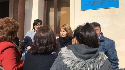 Азаттық тілшісінің айтуынша, сыртта полиция мен байланыстан ажыратқыш құрылғысы бар көлік тұр. Бүгін, 2 сәуірде құқық қорғаушы Бақытжан Төреғожина Глушкова сотына бармақ болған төрт белсендіні полицияның ұстаған жазды.