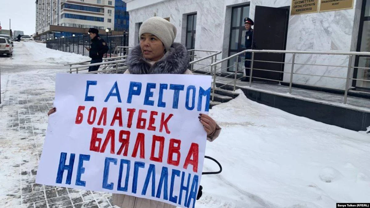 Тәуелсіздік күні шеруден соң 15 күнге қамауға алынған Болатбек Бәліловтың әйелі Ақмарал Біләлова 18 желтоқсанда Бас прокуратура алдында бір адамдық пикет өткізді. Ол күйеуінің қамалғанына наразы.