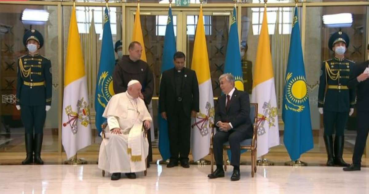 "Қарсы алу рәсімі барысында мемлекеттер басшылары бір-біріне екі елдің делегация мүшелерін таныстырды. Содан кейін Қазақстан Президенті мен Католик шіркеуінің басшысы президенттік терминалдың Каминді залында қысқаша әңгімелесті. Кездесу соңында мәртебелі қонақтың кортежі Ақордаға бағыт алды", - делінген Ақорда хабарламасында.