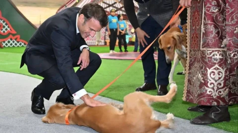 Көрме орталығын тамашалау барысында Эмманюэль Макронға қазақы тазының тұқымы ерекше ұнаған болатын.