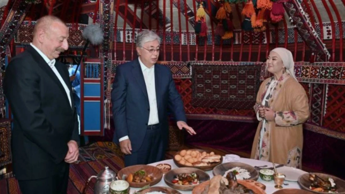 Қазақстан мен Әзербайжан президенттері Каспий теңізінің жағасын аралап көріп, мұнда орнатылған қазақтың киіз үйіне кірді.