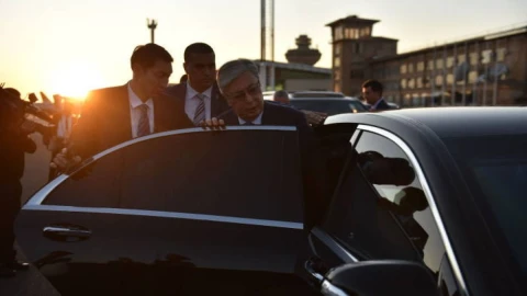 Видеоны президенттің көмекшісі Аида Балаева өзінің Instagram желісіндегі парақшасында жариялады. Онда Қасым-Жомарт Тоқаевтың ғимараттан шығып, жылдам жүріп келе жатқанын көруге болады. Мемлекет басшысы қара Mercedes-Maybach маркалы көлікке отырып кетеді. Ал кортеждің басында мотоцикл мінген жеті полицей жүреді.