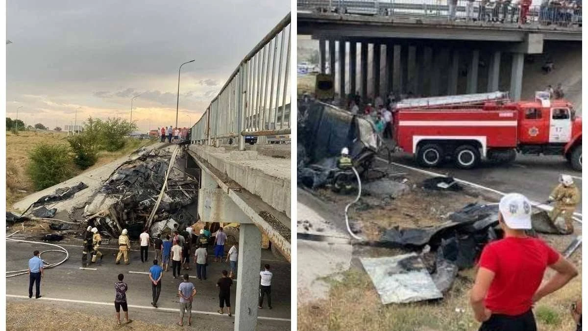“Түркістан облысында жүк көлігінің қатысуымен жол-көлік оқиғасы бойынша тергеу жүргізілуде. 13.07.2021 ж. кешкі уақытта Батыс Еуропа-Батыс Қытай тас жолында "Вольво" жүк көлігінің жүргізушісі Қызылорда қаласына қарай бет алып бара жатып, көпірдің қоршауына соқтығысып, жол-көлік оқиғасы орын алды. Жол апаты нәтижесінде автокөлік өртеніп кетті. Сондай-ақ алған жарақаттарынан жүк көлігінің жолаушысы, Қырғызстан азаматы оқиға орнында қайтыс болды”, – деп мәлімдеді полиция басқармасы.