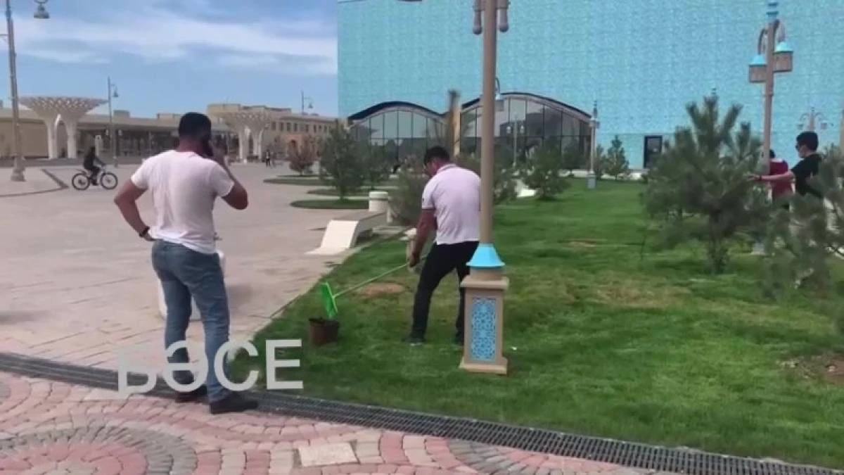 Түркістанда көгалды жасылға бояп жатқандар желіні шулатты (видео)