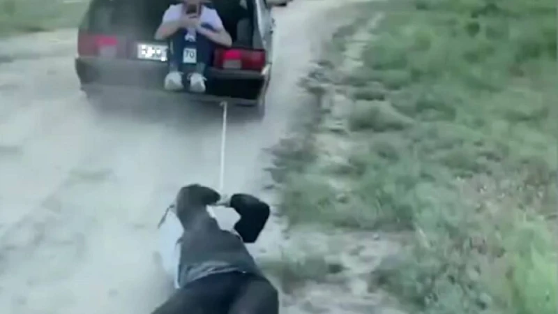Түркістандық адамды көлікке байлап алып сүйреген (видео)