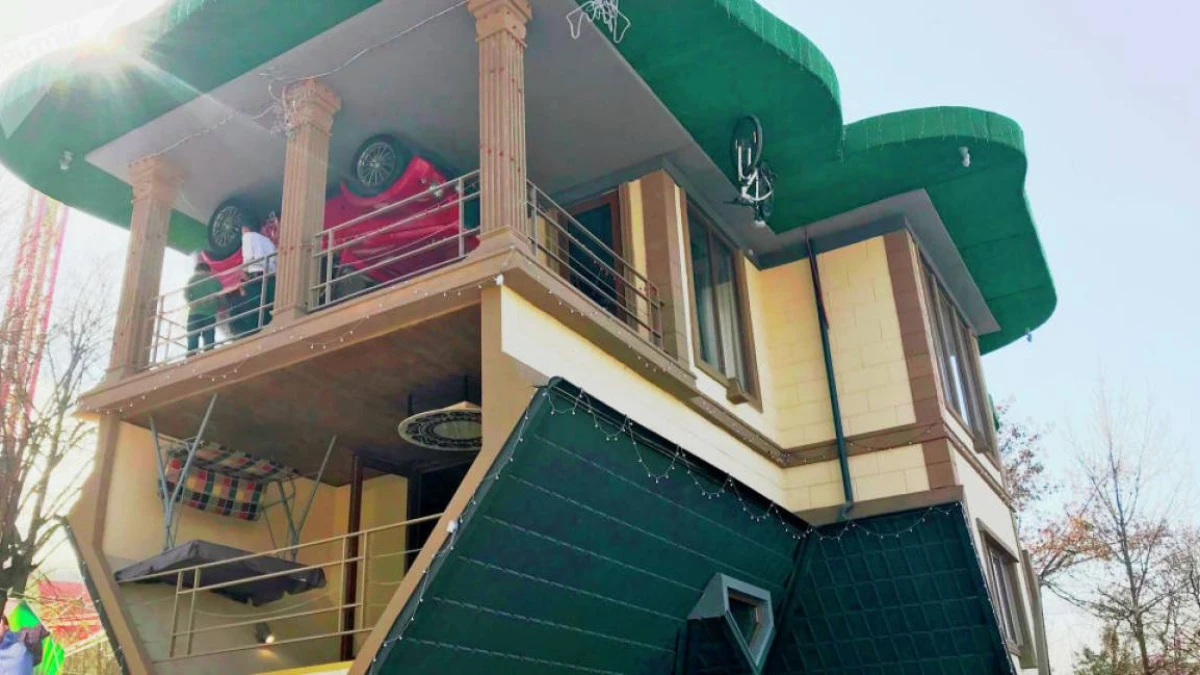 Шымкент қаласының орталығындағы "Қиял әлемі" саябағында төңкеріліп салынған екі қабатты үйді тамашалап келіп, суретке түсушілер көбейген, деп хабарлайды Sputnik Қазақстан тілшісі.