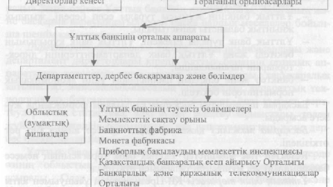Ұлттық банкі өзінің қызметтерін орындауы үшін басқарма, директорат, бас аумақтық және облыстық басқармалармен қатар, басқа да жергілікті құрылымдық бөлімшелері бар. Ұлттық банкінің құрылымы 1. сызбада көрсетілген.